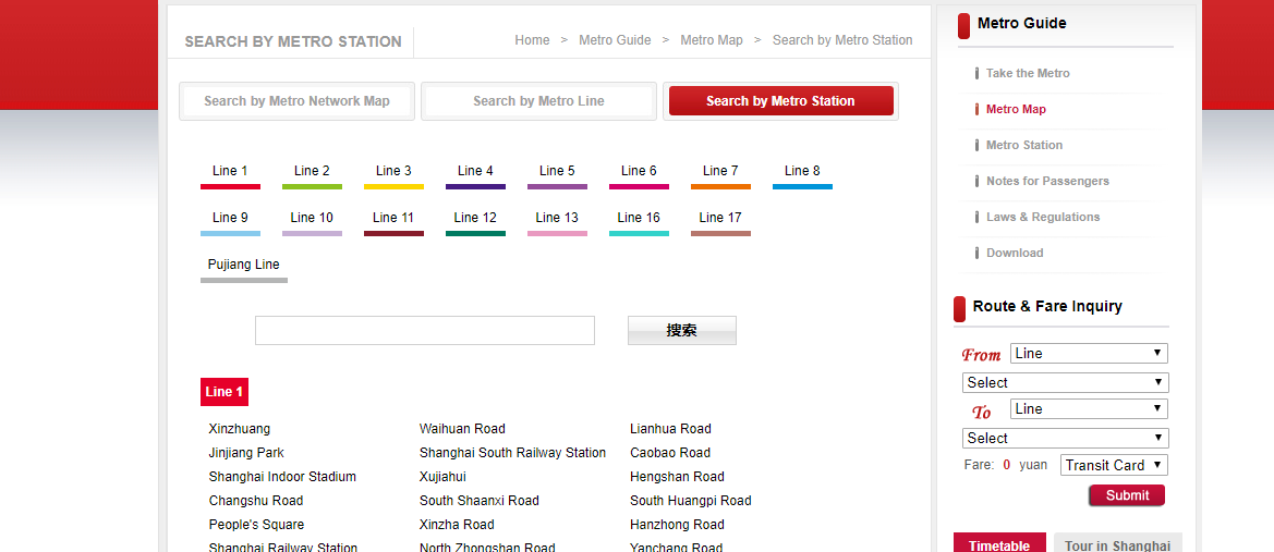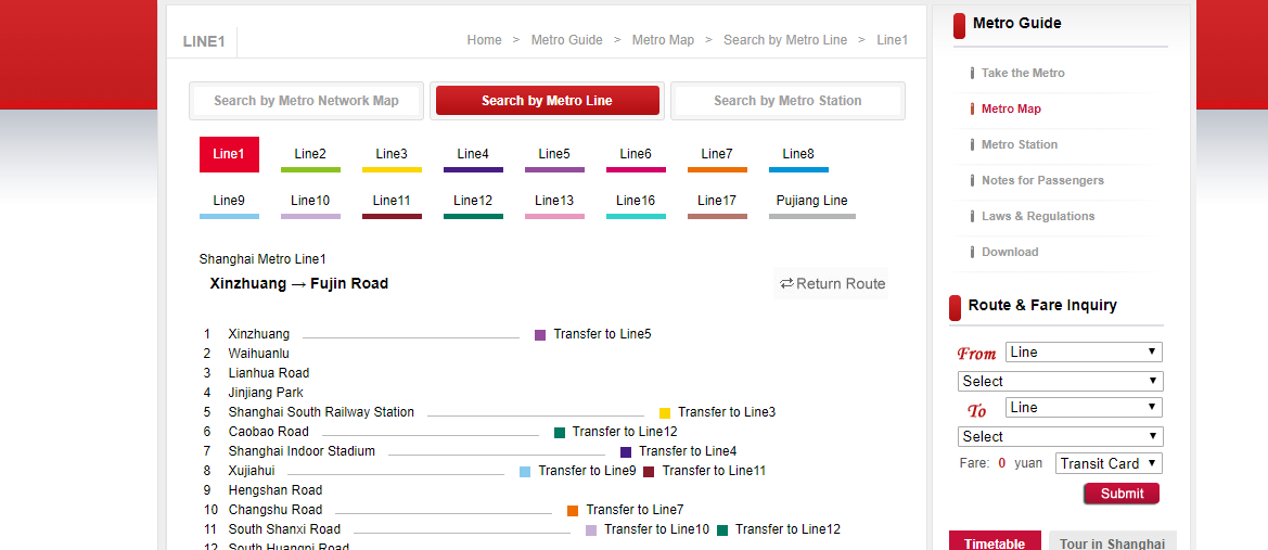 상해 지하철을 노선별로 찾아볼 수도 있네요. 상해도 나름 큰 도시라서 지하철이 17호선까지 있어요. 우왕.... 푸장라인까지 더하면 18개네요.