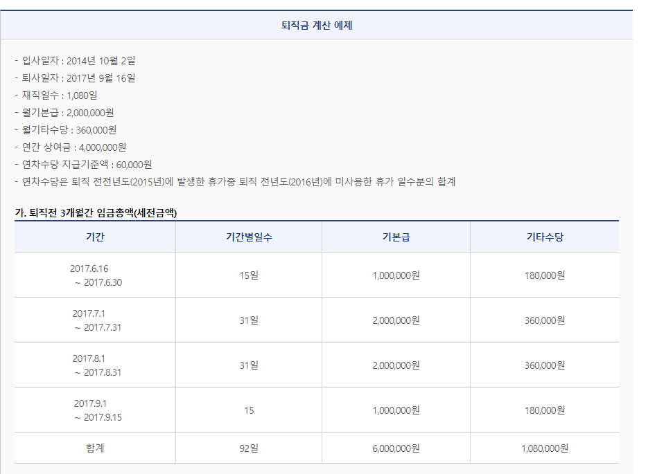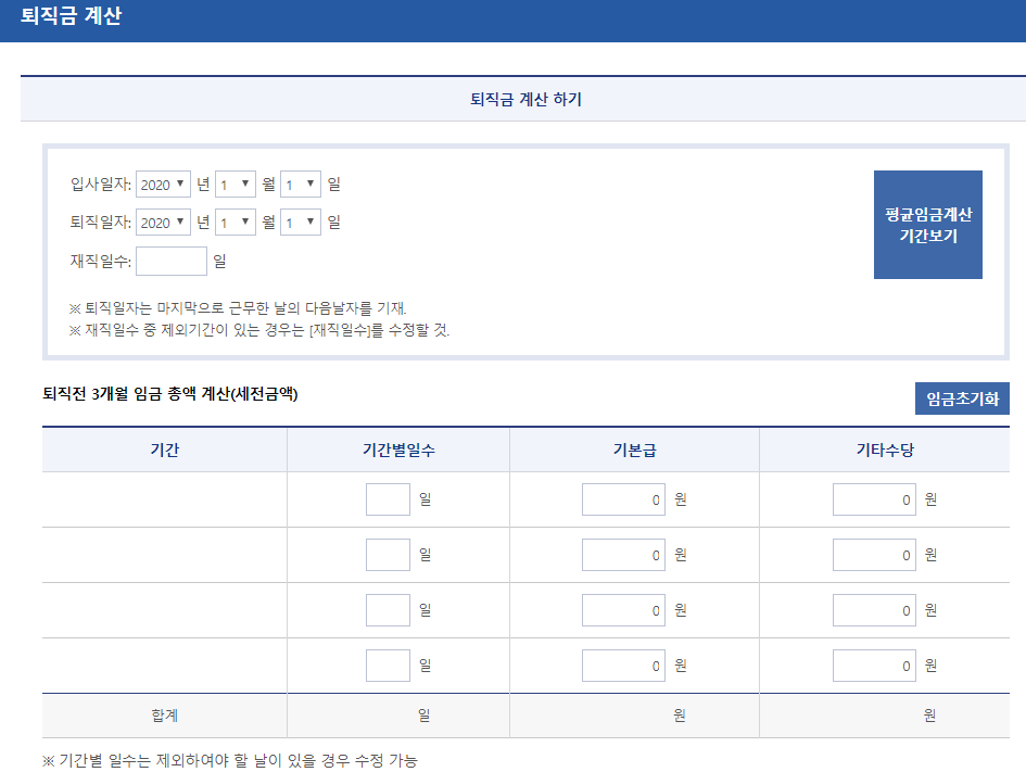 고용노동부에서 제공하는 퇴직금 계산기 사이트 내에 존재하는