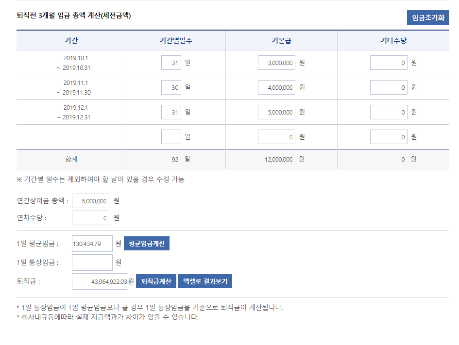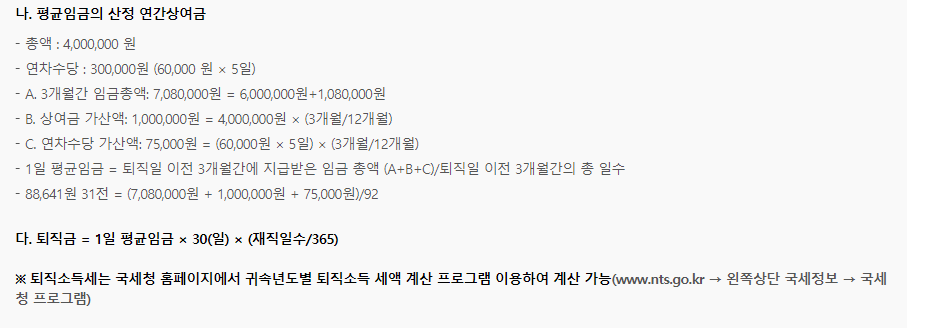 고용노동부에서 제공하는 퇴직금 계산기를 이용하시면
