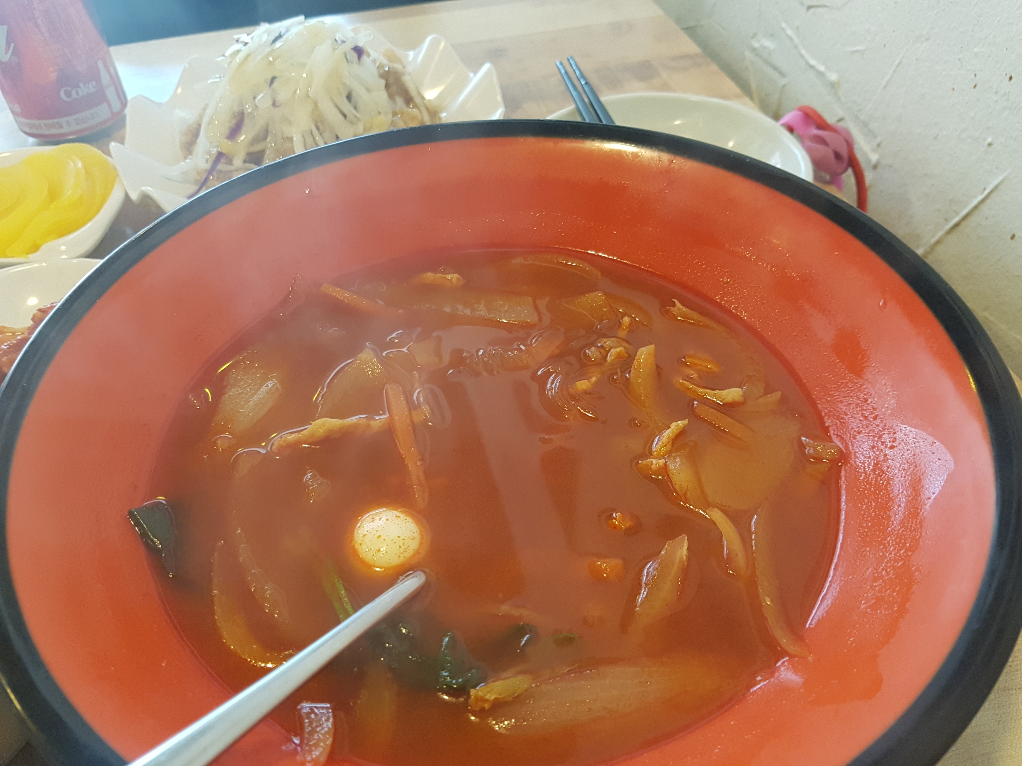짬뽕에 메추리알이 들어 있는 것이 특징이에요.