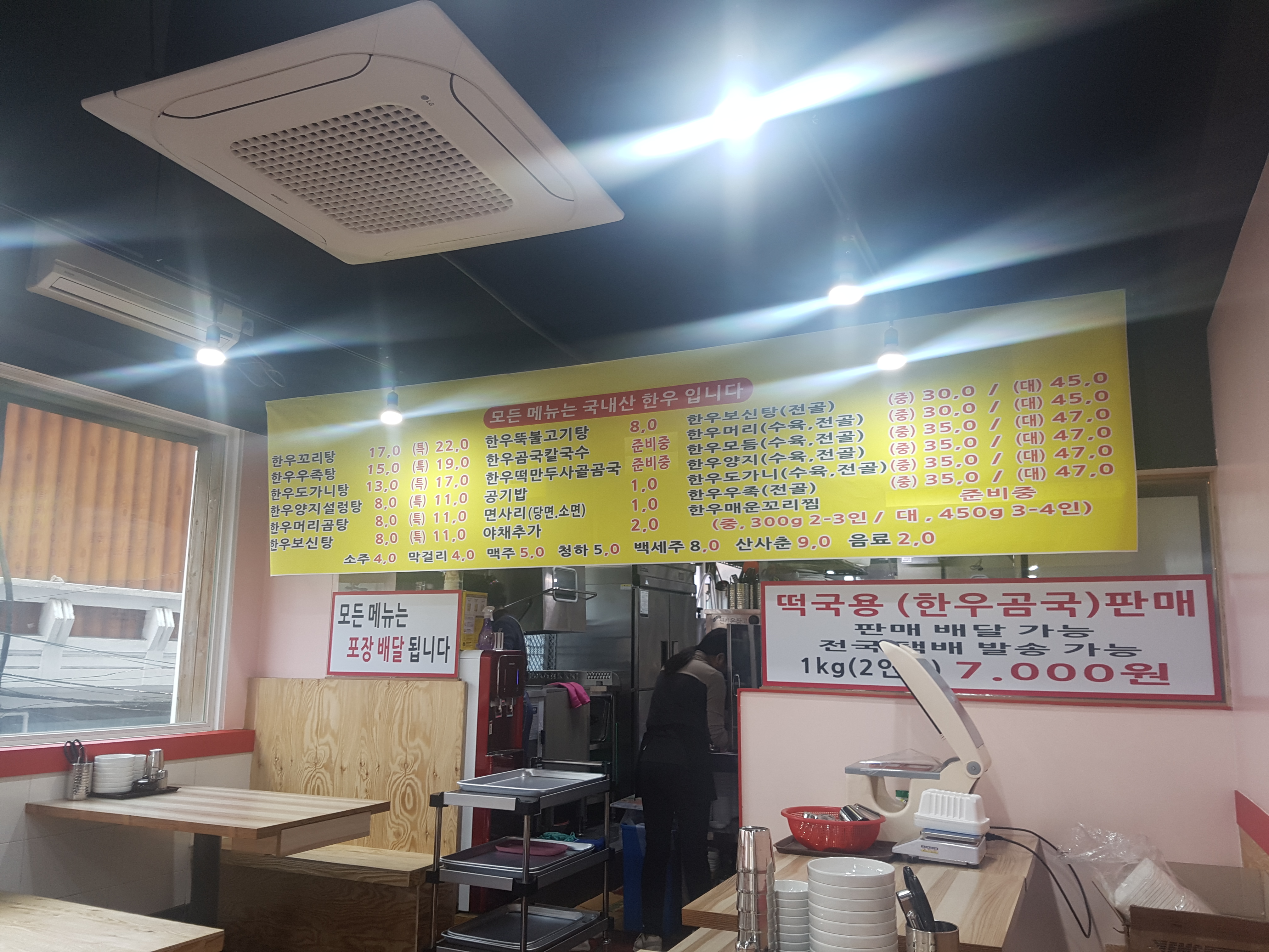 한우뚝불고기탕, 곰국칼국수 등이 있어요.