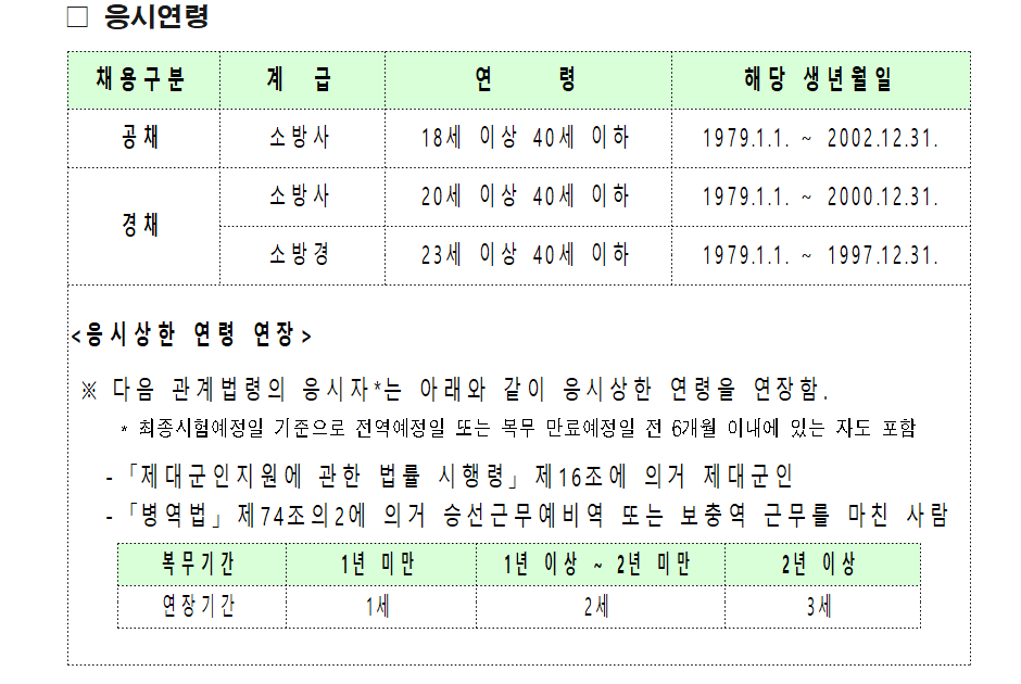 2020년 충청북도 소방공무원 공채의 소방사 응시연령은