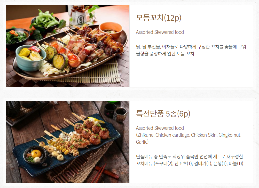 다양한 꼬치 메뉴를 청담이상에서 만나보세요.