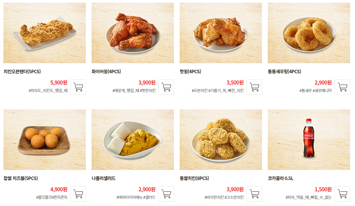 치킨오븐텐더, 화이어윙, 핫윙, 통통새우링,