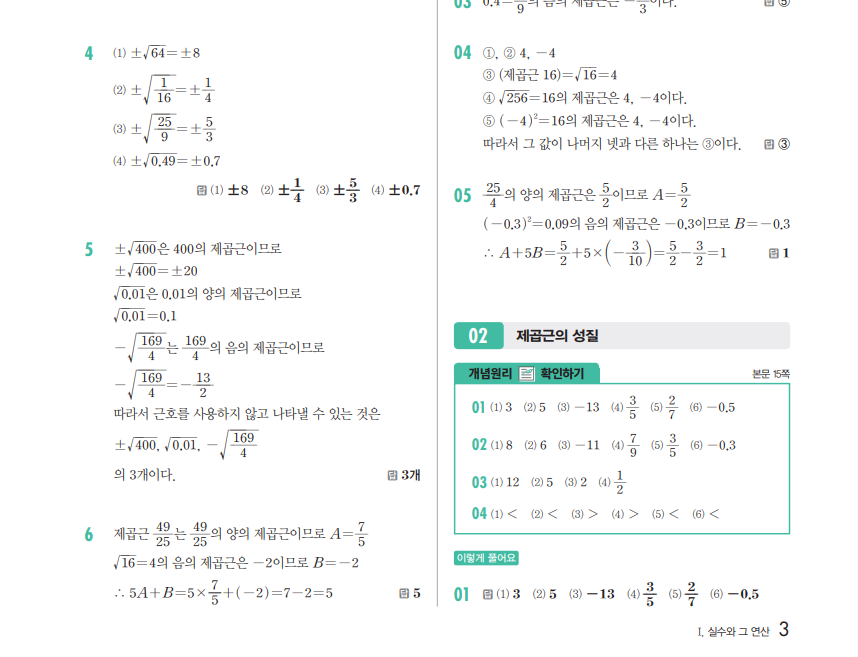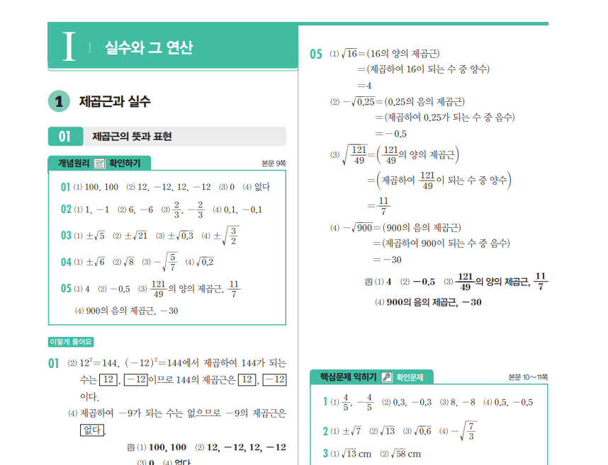 개념원리 중학수학 3-1 답지는