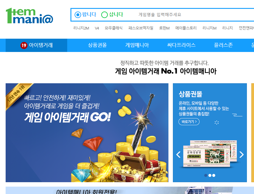 아이템거래 No.1 아이템매니아 - 빠르고 안전한 아이템거래.