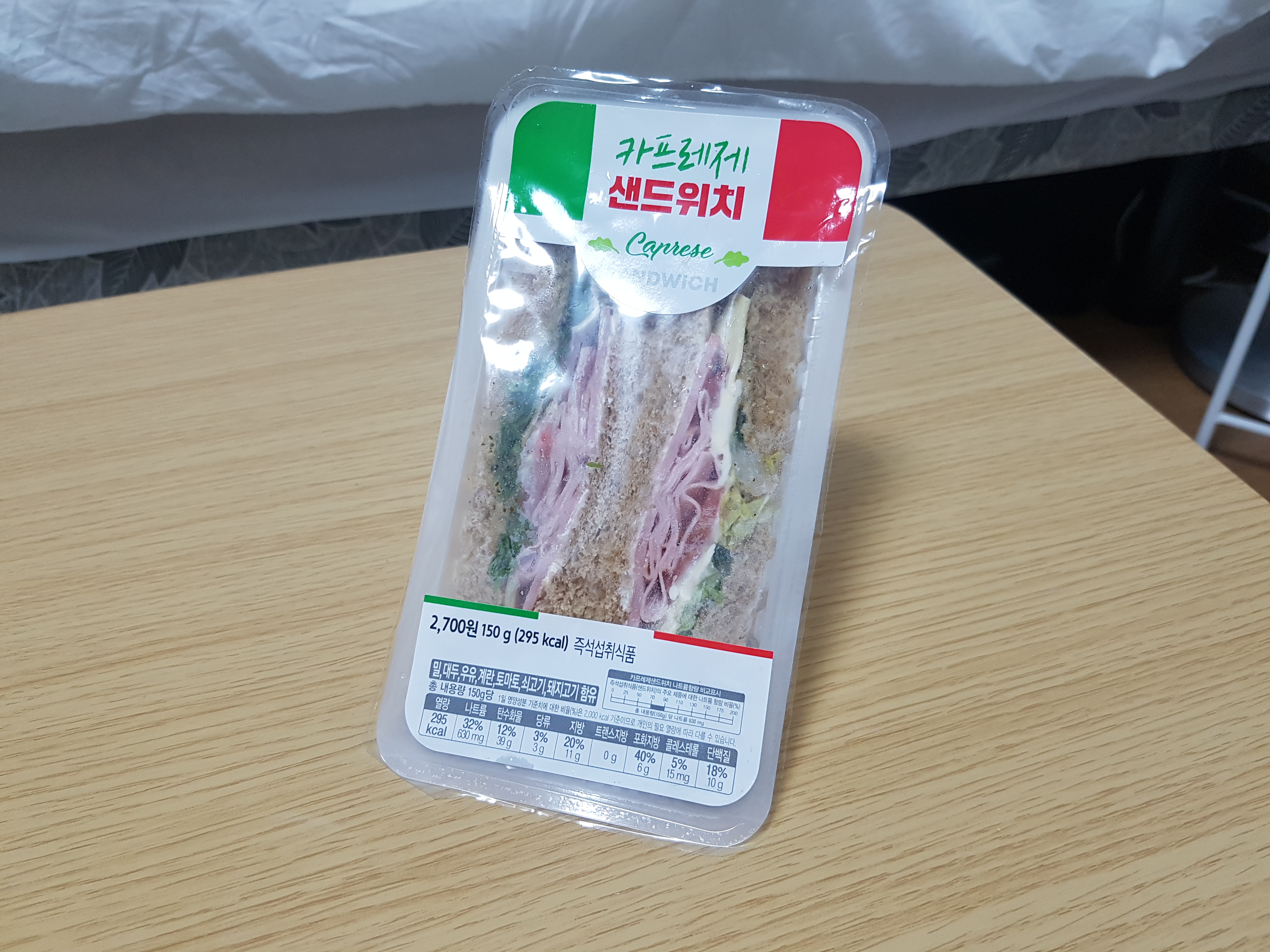 간단하게 점심식사로 CU 편의점에서 편드위치 하나 구매했는데요. 카프레제 샌드위치를 구매했습니다. 밥 먹을 때 야채가 없으면 뭔가 허전한 관계로 야채가 들어 있는 샌드위치를 선호하는데요. CU편의점에서 판매하고 있는 카프레제 샌드위치의 가격은 2,700원입니다.